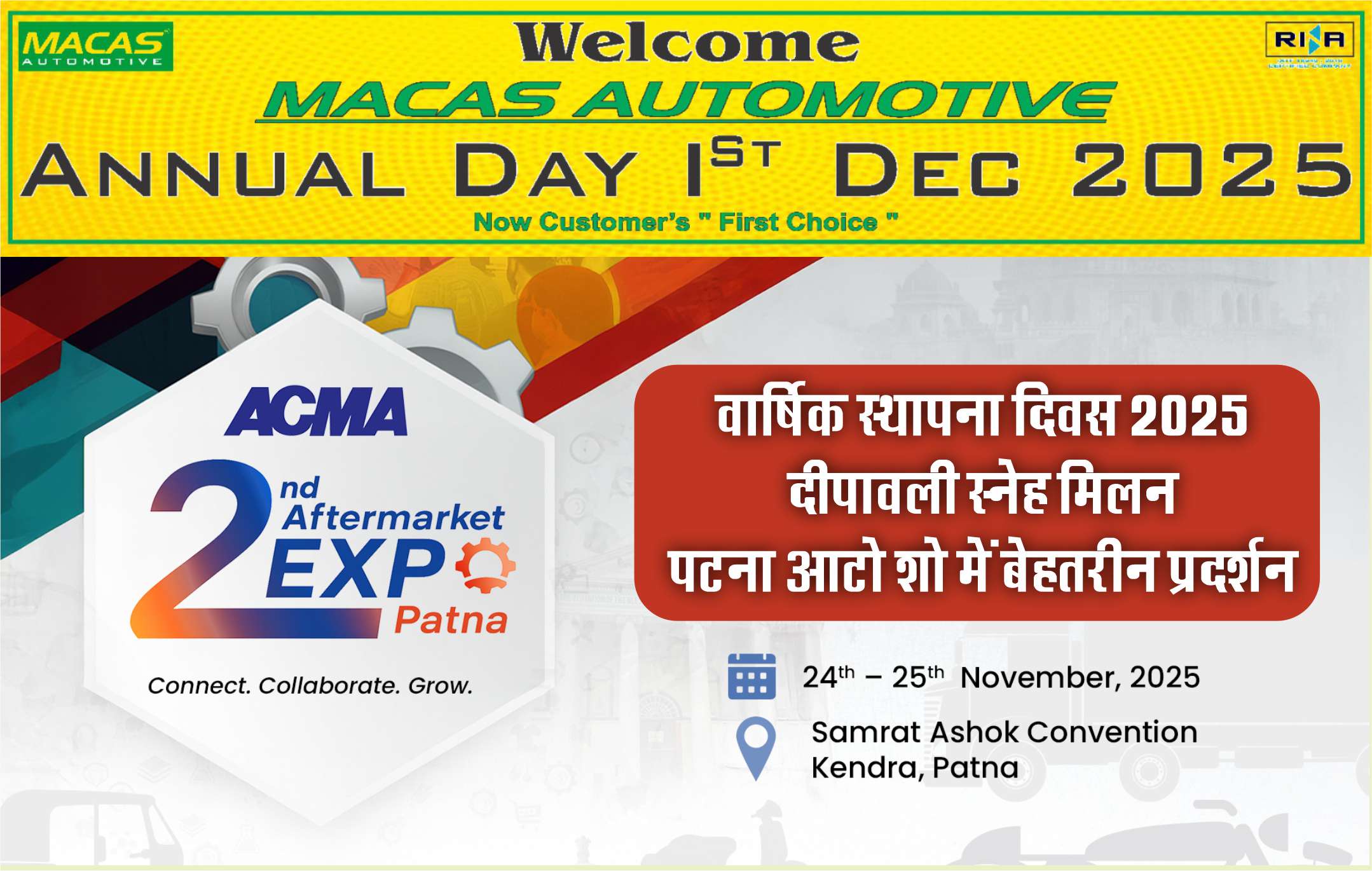 श्री प्रमोद कुमार ने इसी उद्घोषन में सभी को नववर्ष की अग्रिम शुभकामनायें दी। फरवरी 2025 में अपमा द्वारा आयोजित यशोभूमि, द्वारका, नई दिल्ली में आयोजित ऑटोमैकेनिका में पूरी तैयारी के साथ मकास की मार्केटिंग टीम भाग लेने जा रही है। परिवहन सम्पदा के माध्यम से श्री प्रमोद कुमार अपने सभी ग्राहकों को इस मेले में अपने स्टैण्ड पर आंमत्रित करते हुए कहते है कि वर्ष 2025 का अन्तिम माह में भी मकास द्वारा प्रतिदिन नये-नये पायदान चढ़ते के लिये तैयार है।
